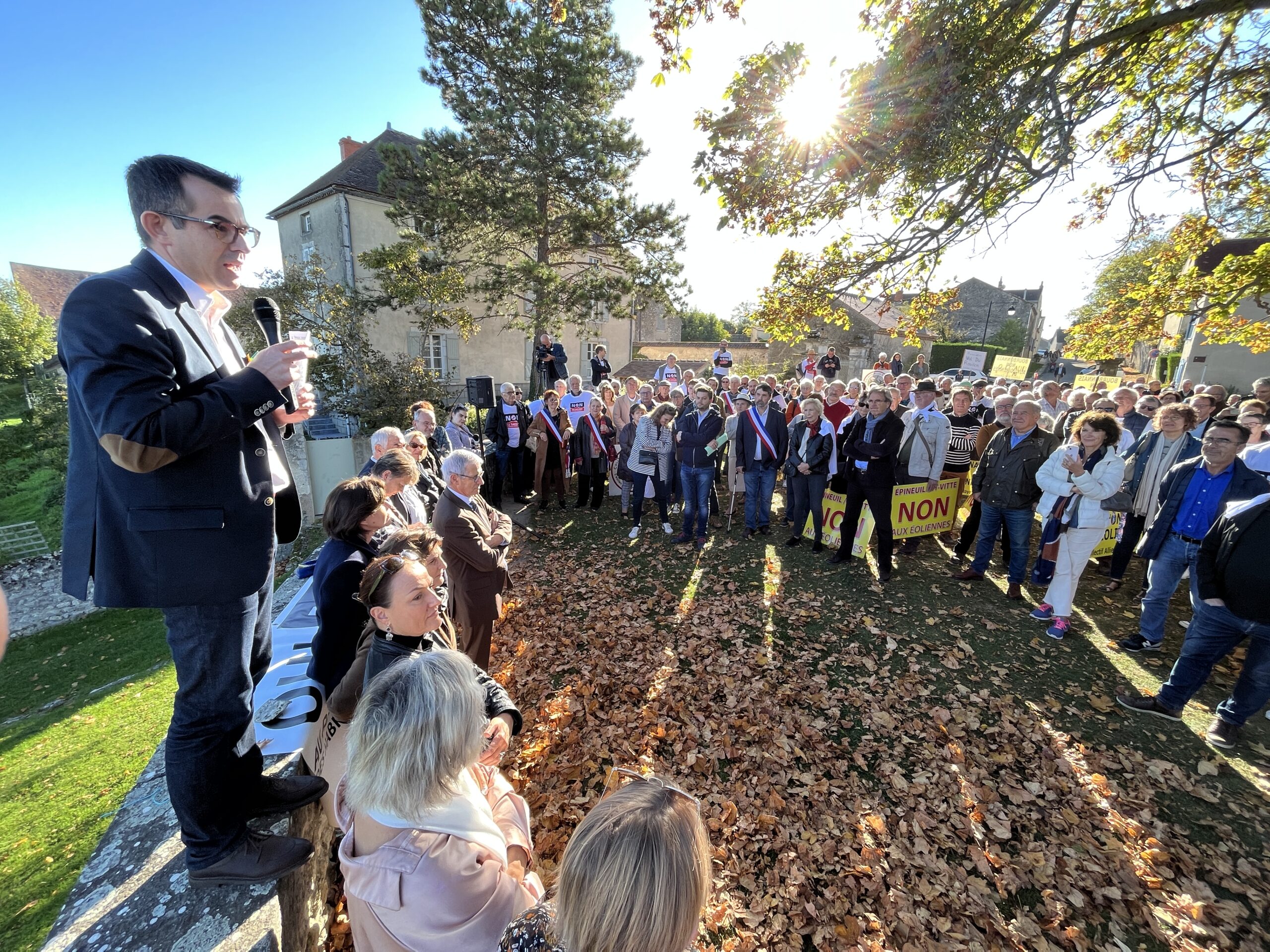 Puis le micro est passé au président du conseil départemental de l’Allier Claude Riboulet qui était accompagné d’une quarantaine d’élus. Il a précisé en introduction « nous sommes tous pour les énergies renouvelables, mais pas n’importe lesquelles, celles adaptées et proportionnées à notre territoire, fondées sur la valorisation de ressources locales dont nous disposons comme la biomasse, l’hydroélectricité, le photovoltaïque (à condition qu’il n’empiète pas sur les usages agricoles).